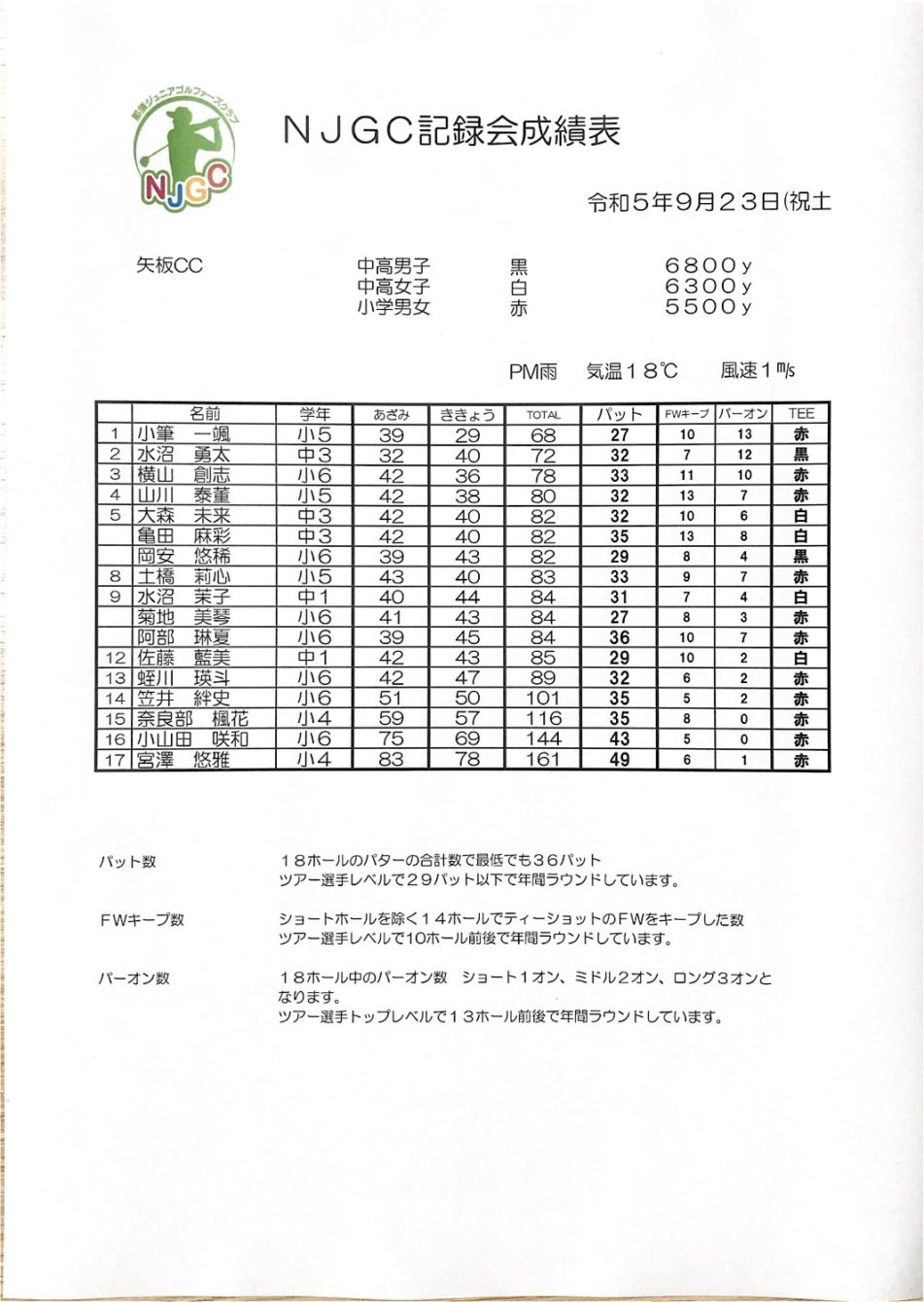 9月23日(祝) 矢板カントリークラブ