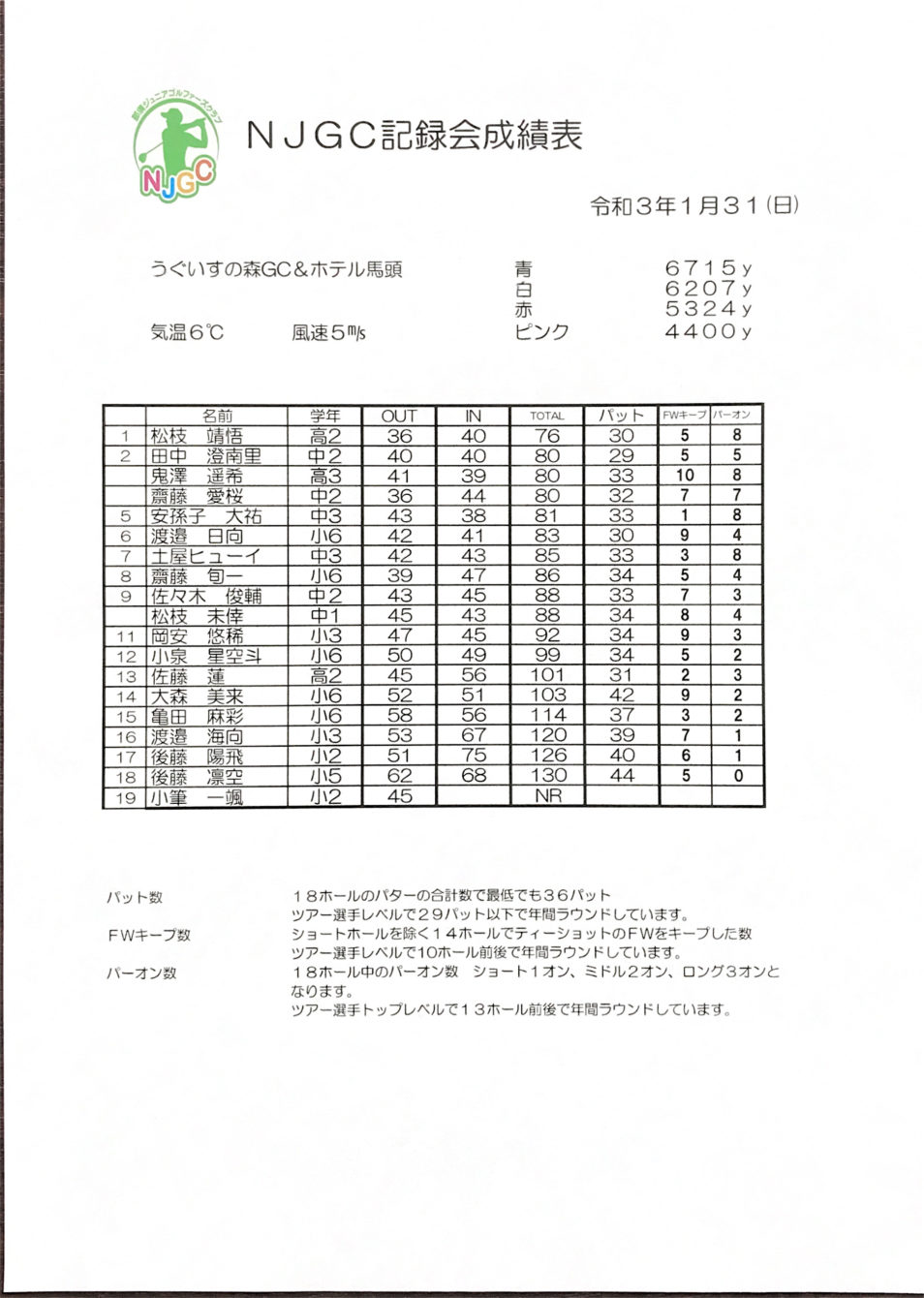 うぐいすの森ゴルフクラブ様、今回の開催を快く受けて頂きありがとうございました😊練習場も完備されていて、コース、グリーンのコンディションも良く子供たちも楽しくラウンドさせていただきました🙆