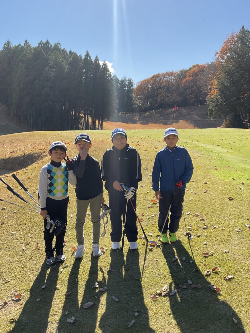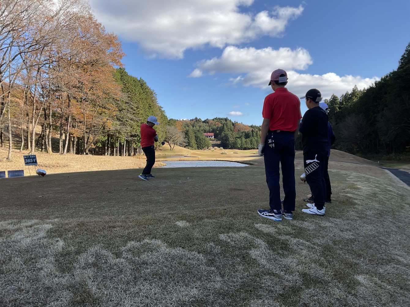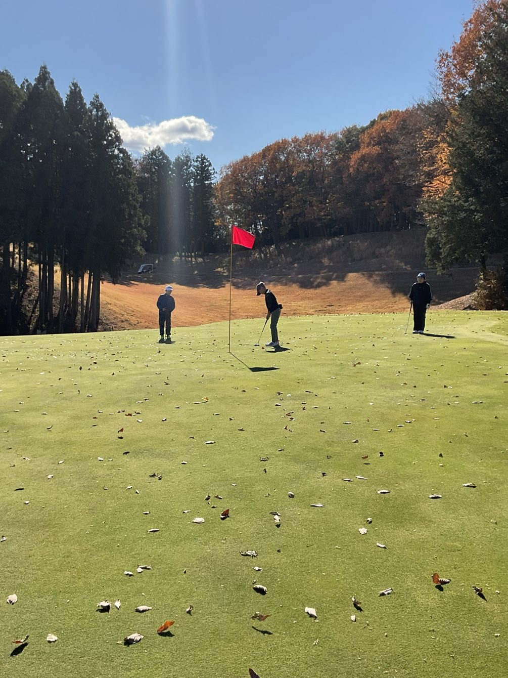 青々していた芝もすっかり白くなり紅葉🍁の秋晴れの中の練習でした⛳️